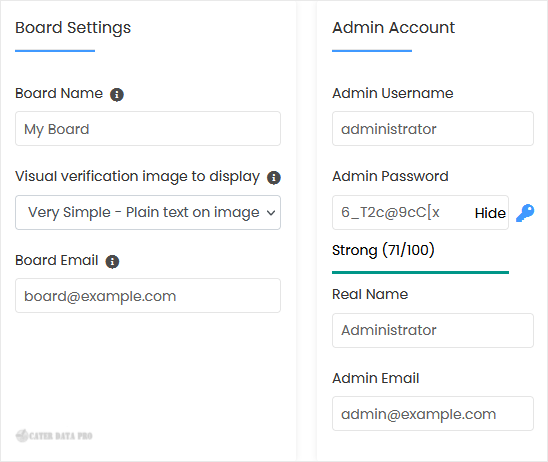 • Admin Username: Your new phpBB username (for security reasons, do not use the administrator or the admin username).
