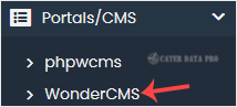 4. On the left side, type WonderCMS in the search box, then click the WonderCMS link that appears.